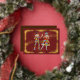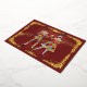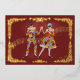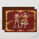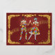 Deux danseurs de l'harlequin debonair se produisent gracieusement en costumes vibrants sur fond de régal rouge canneberge, orné de guirlandes dorées décoratives et entouré de délicates notes musicales. Illustration originale de l'artiste Noël Snow.