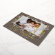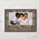 La carte de vacances "Joyeux Noël" présente un design de feuilles de verdure fleurie et de baies avec un élégant texte de salut et cadre en or réel moderne autour de l'image. Personnalisez le texte simple avec une signature familiale et l'année, et choisissez d'inclure un message supplémentaire au verso de la carte. Deux autres espaces photo sont également inclus au dos. Comprend une couleur arrière - plan grise taupe chaude à l'avant.