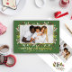 La carte de vacances "Joyeux Noël" présente un design de feuilles de verdure fleurie et de baies avec un élégant texte de salut et cadre en or réel moderne autour de l'image. Personnalisez le texte simple avec une signature familiale et l'année, et choisissez d'inclure un message supplémentaire au verso de la carte. Deux autres espaces photo sont également inclus au dos. Comprend une couleur arrière - plan verte feuillage riche sur l'avant.
