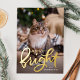 Carte de vacances pour chat moderne avec la photo verticale de votre chat avec "Meowy and Bright" dans une superposition de script en feuille d'or écrit à la main. Personnalisez l'avant de la carte de vacances en feuille d'or en ajoutant votre nom. La carte de vacances photo chat revient pour mettre en vedette un simple motif étoilé rouge et blanc.