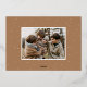 Cartes photos de vacances modernes avec votre photo horizontale avec "Joyeux Noël" affiché dans un script manuscrit en feuille d'or. Personnalisez la carte photo de Noël en papier peint avec votre nom de famille et l'année en lettres blanches. La carte de vacances photo unique revient pour afficher une photo supplémentaire et un arrière - plan marron-caramel avec des points blancs subtils.