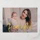 Carte de vacances moderne avec votre photo horizontale avec "Paiseful" affichée dans une feuille d'or lettrée main brosse de script. Personnalisez la carte de vacances en papier peint en ajoutant votre nom et l'année. Le dos de la carte est muni d'un motif de flocon bleu glacé.