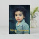 Envoyez des réjouissances de vacances avec cette carte de Noël mignonne avec l'accueil manuscrit "Joyeux Noël" et des flocons de neige dessinés à la craie sur votre photo de famille préférée. Le texte et les flocons de neige sur le devant sont en véritable feuille d'or. Le côté arrière est un motif de flocon vert doux. Vous pouvez modifier la couleur de l'arrière - plan dans l'outil d'édition de conception.