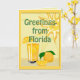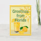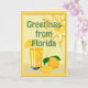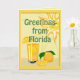 Illustration graphique d'oranges et de soleil sur une carte de voeux de Floride.