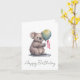 Au recto de la carte se trouve une image d'un charmant vache qui tient un ballon aux couleurs vives. Le koala vous regarde gentiment et semble presque vouloir dire "Félicitations!" dans sa propre langue mignonne. Le ballon est décoré avec des couleurs et des motifs festifs et offre une atmosphère joyeuse et festive à la carte. La carte est idéale pour envoyer à quelqu'un qui est un anniversaire et est garantie pour donner un sourire sur son visage.