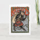 Carte de vacances représentant Krampus portant un sac d'enfants turbulents, une chaîne et un bâton pour fouetter.