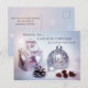 Une carte de Noël sophistiquée et fantaisiste représentant une lanterne illuminée par la lumière d'une bougie, ornée de pommes de pin et de décorations de Noël joyeuses.