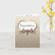 Elégante carte mariage damassé bronzée, avec de beaux graphismes de bijoux comme doré rose et bleu décorations de fleurs. Une zone de texte à bordure dorée, sur le devant, a un texte en script noir lisant Félicitations. L'intérieur est décoré d'un cadre doré, contre un arrière - plan blanc, et est orné d'élégantes fleurs de bijoux. Personnalisez le texte à l'intérieur avec votre propre salutation et nom.