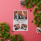 Elégante carte de Noël avec une aquarelle Staffordshire bull terrier Pitbull en casquette du Père Noël, belle calligraphie moderne rouge et arrière - plan gris avec neige blanche décorent l'arrière - plan. Cette carte de vacances moderne est entièrement personnalisable. Ajoutez votre propre texte, nom de famille, année et photos. Amateurs de Staffy, Amateurs de Staffie, Amateurs de pitbull, Amateurs de Terrier American Staffordshire, Amstaff.