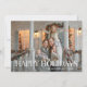 Cette élégante carte de vœux de fêtes présente Joyeuses Fêtes en écriture blanche, votre photo préférée et est personnalisée avec votre nom. Le verso de la carte présente votre message de fêtes personnalisé.