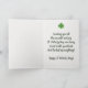 Cette belle carte de vœux de la Saint-Patrick comporte un fond de feuille de trèfle et un message encadré. À l'intérieur se trouvent un verset et un message. Le texte sur le devant et à l'intérieur est modifiable, alors n'hésitez pas à le modifier ainsi que le style, la taille et la couleur de la police. Les couleurs du cadre et du fond derrière le texte peuvent être modifiées. Les couleurs de fond à l'intérieur et à l'arrière peuvent également être modifiées. Cette carte polyvalente peut être utilisée pour la Saint-Patrick, les anniversaires, les condoléances, pour dire "je pense à vous", "merci", la retraite, etc.