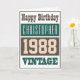 Une carte d'anniversaire avec l'année de naissance. Si vous cherchez une carte qui présente l'année de naissance du destinataire, alors celle-ci est pour vous. Ajoutez votre choix de nom et de message intérieur. 1988