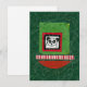Panda amusant sur des éléments de collage vert et rouge, rayures rouges et blanches, tous assis sur un arrière - plan vert très texturé.
