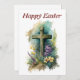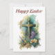 Une carte de voeux de Pâques colorée avec une croix sur une colline, entourée de fleurs et d'un arbre et une église dans l'arrière - plan. Peut être acheté en tant que carte de voeux physique ou en tant que téléchargement numérique, fichier haute résolution pour imprimer vous-même.