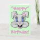 Bien qu'il soit offert ici comme carte d'anniversaire, ce design délicieusement fantaisiste est tout aussi approprié qu'une carte de Pâques, Nouveau Bébé ou "Penser à vous". Vous êtes invités à modifier le texte (et la couleur du texte) sur l'extérieur et l'intérieur de la carte pour mieux répondre à vos besoins ou à vos occasions. Présenté sur un arrière - plan vert pâle, nous vous encourageons également à changer la couleur de la toile de fond pour vous adapter à votre propre esthétique pour une carte de voeux vraiment personnalisée et unique.