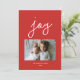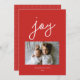 Faites une déclaration joyeuse à Noël ou au Nouvel An avec cette carte de vœux photo pour les fêtes mettant en vedette votre photo et le mot "joie". Recherchez les produits coordonnés de Parcel Studios.