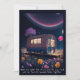 Carte de voeux Whimsical plat pour les amateurs de livre caractéristiques AI généré rêve art numérique avec un bookmobile illuminé dans un champ de fleurs sous un ciel nocturne. "Rencontrez-moi sous les étoiles et nous pouvons lire tous nos livres interdits préférés ensemble" le texte peut être customisé à votre propre message spécial
