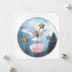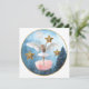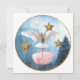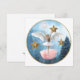 Carte avec une image fantaisiste d'une jeune fille avec des ailes d'ange dansant dans un ciel hivernal étoilé.
