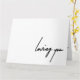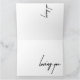 Partagez vos émotions profondes avec cette carte de voeux ‘Loving You’. Parfait pour toute occasion, cette carte est une belle façon d'express l'amour et l'appréciation pour quelqu'un de spécial. Que ce soit pour un partenaire romantique, un ami proche ou une famille, cette carte ajoute une touche personnelle et touchante à votre message.