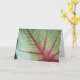 Les feuilles colorés du Caladium se déclinent en différentes nuances et espèces. Les veines rouge vif de la feuille contrastent avec le vert de son corps. Ce plante pousse toute l'année dans des climats chauds, mais ses couleurs rappellent l'automne. Cette carte est appropriée pour de nombreuses occasions et événements importants de la vie, de l'anniversaire à la remise des diplômes, au mariage, anniversaire, sympathie et amitié. L'intérieur de la carte pliée est vide pour que vous puissiez écrire vos messages personnels.