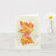 Carte de voeux pliée avec repro de l'aquarelle d'origine des feuilles d'automne colorées. Message vide.