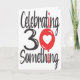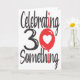 Carte de vœux d'anniversaire pour une personne qui a 30 ans et quelques. lettres rouges et noires et un cœur. "Célébrer les 30 ans et quelques"