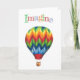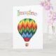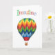 Carte colorée et inspirante, idéale pour tout message d'encouragement. Ballon à air chaud joyeux avec "Imagine" en lettres colorées au-dessus. Intérieur vierge.