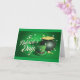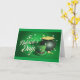 Une image mignonne d'un pot d'or et d'un chapeau haut de forme vert, avec un message, "Jour de la Saint-Patrick", est présentée sur cette carte de vœux. L'intérieur de la carte indique, "Nous vous souhaitons la chance des Irlandais aujourd'hui et toujours !". Une excellente carte à envoyer à la famille et aux amis pour les vacances.