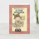 Carte d'appréciation mignonne de l'enseignant, avec des graphismes primitifs d'une petite fille d'école, avec un cadre à damiers crème et rouge autour du bord extérieur. Texte graphique noir, sur le devant : Merci d'être un super enseignant. Personnalisez le texte noir, à l'intérieur de la carte, pour lire ce que vous voulez.