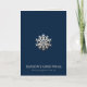 Faites-vous plaisir avec notre carte de voeux professionnelle pliée Navy Snowflake. Ce design sophistiqué comprend un flocon de neige métallique brossé à l'avant, ainsi que le message de Bonnes Fêtes que vous pouvez personnaliser. A l'intérieur, un flocon de neige et votre message personnalisé sont placés contre un arrière - plan léger, créant une atmosphère chaleureuse et accueillante. Le navy back offre de l'espace pour votre logo et vos coordonnées personnalisables, ajoutant une touche professionnelle à vos souhaits de vacances. Faites une impression mémorable sur vos clients, partenaires et collègues en envoyant des salutations chaleureuses et festives qui reflètent l'élégance et le professionnalisme de votre entreprise.