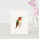 Carte de voeux vierge avec un colibri roux. Les colibris roux sont de petits colibris pugnaces qui se distinguent par leur vol de fléchettes et leur maniabilité à épingler. Ils passent les hivers au Mexique et se déplacent vers le nord-ouest au début du printemps, principalement à travers les basses terres du Pacifique.