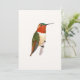 Carte de voeux vierge à plat avec un colibri roux. Les colibris roux sont de petits colibris pugnaces qui se distinguent par leur vol de fléchettes et leur maniabilité à épingler. Ils passent les hivers au Mexique et se déplacent vers le nord-ouest au début du printemps, principalement à travers les basses terres du Pacifique.