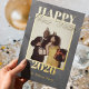 Envoyez vos vœux pour la nouvelle année avec cette carte de vacances à feuille d'or pour le Nouvel An moderne et heureux avec une photo simple ! Ce design présente une écriture en relief avec la possibilité de personnaliser avec votre photo et votre nom. Personnalisez sur Zazzle ! Vous avez une demande personnalisée ? Envoyez-moi un message !