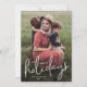 Une carte de vœux simple pour les fêtes avec un script moderne et une photo de portrait en pleine page avec le nom de la famille. Le verso comporte une deuxième photo avec un message de fête sincère de la part de la famille. Cliquez sur le bouton modifier pour personnaliser ce design.