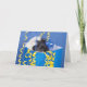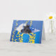 Un mignon cobaye de coronet sort d'un sac cadeau bleu avec un ruban jaune sur cette belle carte de voeux de cobaye. Copyright Cool Cavy Guinea Pig Shop