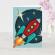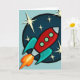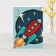 Carte de voeux verticale d'illustration graphique de bateau de rétrofusée. La couleur d'arrière - plan peut être customisée.