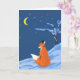 Un renard est assis sur une colline enneigée sous les branches d'un arbre gelé. La lune crescendante brille au milieu des étoiles brillantes dans cette nuit froide de l'hiver.