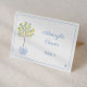 Cette conception est vendue sous forme d'une carte plate de 3,5x5 pouces que vous devrez plier (ou marquer et plier) en deux pour créer des cartes de place ou des cartes de buffet individuelles avec une taille pliée de 3,5x2,5 pouces. Ce design classique présente un citronnier aquarellé stylisé, avec des bandes de suceurs bleues et blanches au verso.
