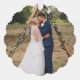 Joli mariage de Noël merci ornement personnalisé avec votre photo mariage d'un côté et de l'autre votre nom de famille partagé avec l'année encadrée par de jolis bouquets de fleurs de Noël en blanc, rouge, bleu et vert de l'autre côté. Invités mariages Mercis pour partager votre journée spéciale avec un joli ornement de Noël fleuri personnalisé avec votre photo et vos noms mariages.