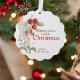 Envoyez un message de bienvenue qui sert de garde à l'ornement de cette carte de Noël avec des baies rouges d'aquarelle, du pin doré et une verdure douce. Une façon de se réjouir, ce design allie charme festif et simplicité moderne. Parfait pour la famille, les amis ou les collègues.