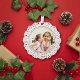 Célébrez la magie de Noël avec une magnifique carte de décoration en papier photo de vacances aux flocons rouges qui ne manquera pas d'impressionner! La carte comporte une belle photo de famille ronde avec une bordure de flocons rouges sur un arrière - plan blanc, ajoutant une touche de sophistication à votre accueil. Vos voeux de Noël sincères sont écrits en texte courbe autour de la photo, ce qui en fait un souvenir inoubliable. Le dos de la carte comprend une deuxième photo de famille, ce qui en fait un moyen idéal de partager vos souvenirs avec vos proches. La couverture a été conçue à l'aide de certains actifs de Freepik.com