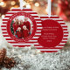 Carte d'ornement photo moderne Joyeux Noël - Arrière - plan rayé rouge et blanc. C'est une carte de voeux qui est aussi un ornement.
