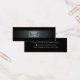 Carte d'affichage de mini produit avec un dégradé gris foncé, modèle de logo personnalisé centré et icônes de médias sociaux. Les repères d'oreille peuvent être ajustés en ajoutant et en enlevant des espaces dans le champ modèle, et en déplaçant l'élément entier dans l'outil de personnalisation.