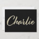 Une carte personnalisée belle et noble / carte de vœux / carte cadeau / carte d'anniversaire en design d'or blanc liquide manuscrit pour Charlie.