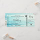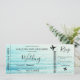 Une carte d'embarquement d'avion de style aquarelle de plage de script enregistrer la date moderne et cool en noir, parfaite pour les mariages de destination.