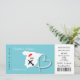 Une faire-part de mariage amusante mais élégante dans un style carte d'embarquement/billet pour les couples se mariant à l'étranger Espagne qui est montré dans une silhouette carte blanche sur le bleu turquoise avec coeur d'amour rouge sucré, silhouette d'avion et forme de coeur tourbillonnant. Le revers est facile à customiser avec vos détails personnels et a un joli motif en dentelle fleurie blanche. Idéal pour les mariages de la ville espagnole et de la plage côtière.