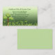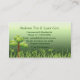 Customisez le carte de visite à la mode pour votre soin de pelouse, jardinage ou société de prestations de services d'arbre. L'arrière - plan est fait dans un gradient vert avec un arbre grand de l'aile gauche. L'herbe vert clair se développe du fond de la conception. Customisez le texte dans votre choix des polices et des couleurs.