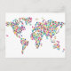 Une carte du monde faite de silhouettes colorées de chats sur un arrière - plan blanc.