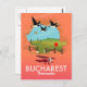 Plan de vacances de Bucarest Roumanie avec oies volantes et un biplane rouge.