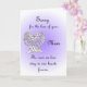 Cette carte présente un arrière - plan blanc et violet dégradé avec des ailes d'ange en forme de coeur d'amour et le libellé "Désolé pour la perte de votre maman. Ceux que nous aimons restent dans nos coeurs pour toujours" Cette carte peut être personnalisée en changeant le verset à l'intérieur qui dit "Penser à vous en cette période difficile"